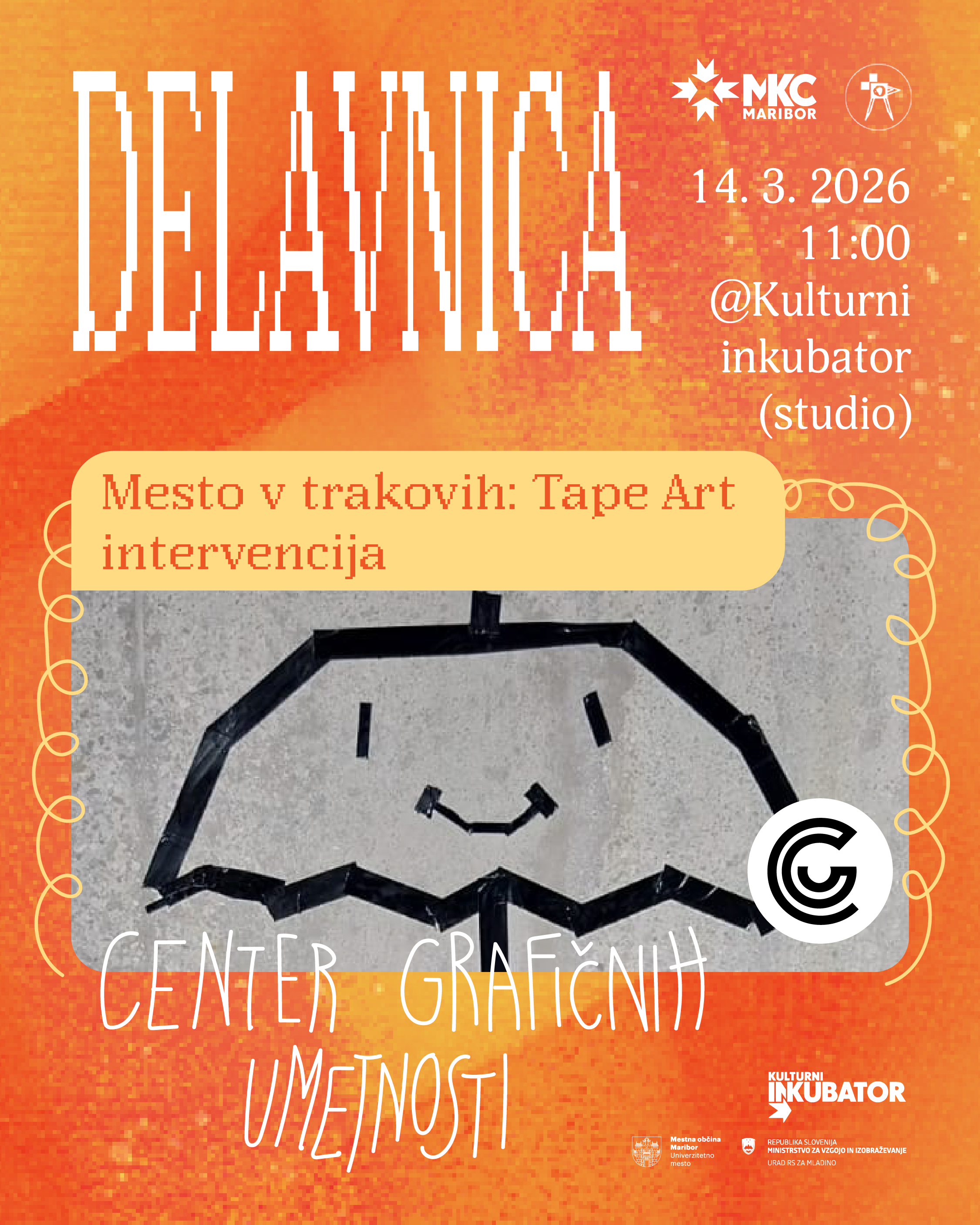 ob 11.00 | Kulturni inkubator (studio): DELAVNICA: Center Grafičnih Umetnosti - Mesto v trakovih: Tape Art Intervencija