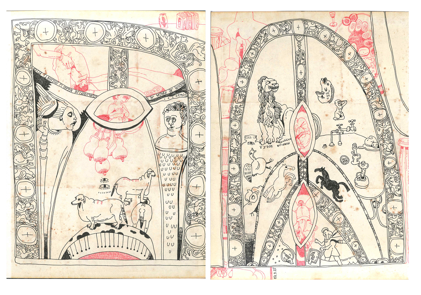 Risbe predstavljajo manifestacije različnih osebnih pogledov na realnost in domišljijo ter hkrati družbeno angažiranost. Subjekt, ki se zaveda limba, ki ga prežema, beži v iskanju zatočišča, a se na introspektivni, imaginarni ravni obrne k sebi. Imaginarno, skrivno sobo, ki je ne najde v zunanjem svetu, hrani le zase in vanjo selektivno, glede na svojo občutljivost, spušča druge zablodele subjekte, vredne spoznanja. Ta vrsta bega pred samim seboj (življenjem/realnostjo) je znana kot samomor. Samomor v tem kontekstu ni dokončnost izvora, temveč prehod iz enega stanja/oblike v drugo, ki postopoma deformira telesa in prostor skozi segmentno delitev časa in prostora ter jih postavlja v metaforično zaprt prostor.
